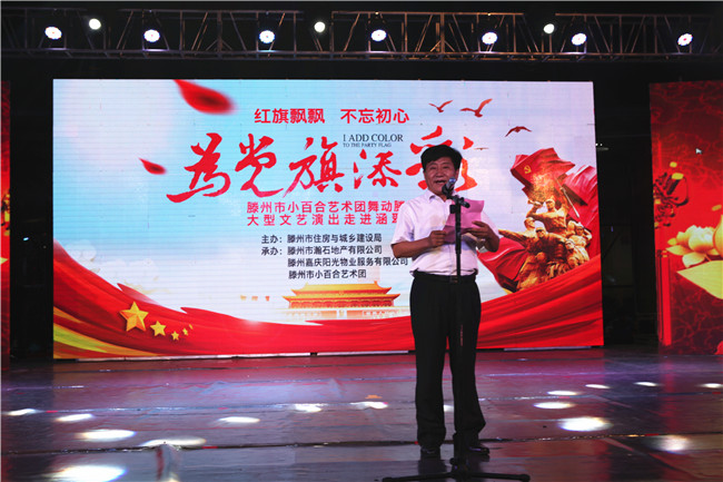 黨建突破提品質(zhì)》的要求,充分展現(xiàn)基層黨支部的戰(zhàn)斗堡壘作用,提升物業(yè)服務(wù)品質(zhì),7月20日晚,由市住房和城鄉(xiāng)建設(shè)局主辦,瀚石地產(chǎn)公司、嘉慶陽光物業(yè)公司、小百合藝術(shù)團承辦的“紅旗飄飄