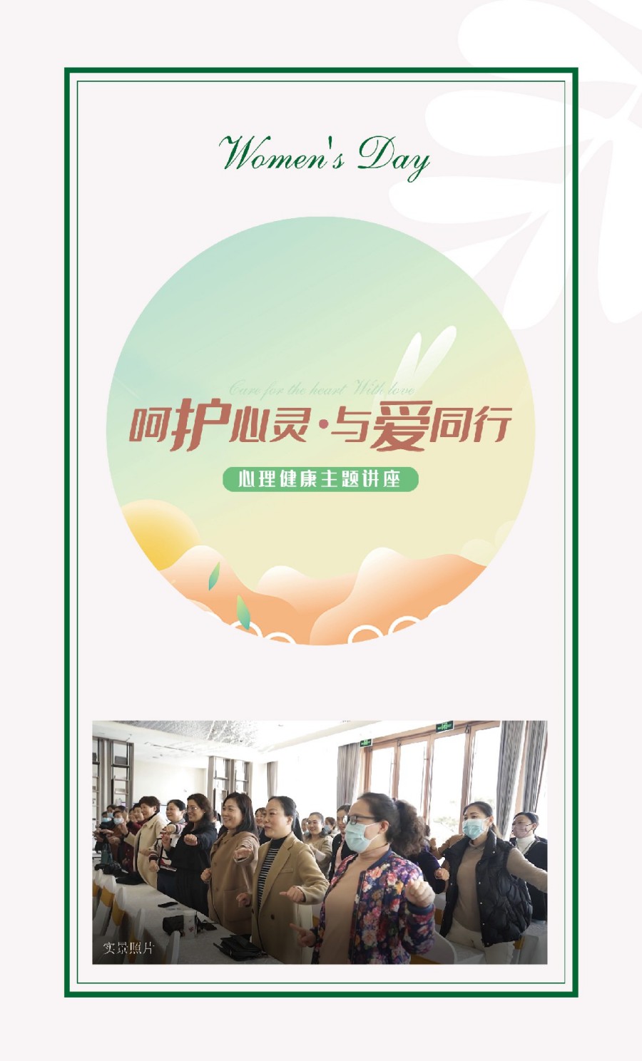 活動邀請了滕州市總工會職工心理健康服務中心李琳主任為全體女職工做了“呵護心靈.與愛同行”心理健康主題講座,隨后進行了“詩情花意.禮贊芳華”花藝沙龍活動,活動現(xiàn)場氣氛活躍,精彩紛呈。通過心理健康講座中對案例的生動的剖析、精彩的現(xiàn)場互動小游戲及花藝沙龍的插花技藝學習和動手參與,使全體女職工釋放了壓力,舒緩了心情,身心都得到了放松,大家共同度過了一個快樂、難忘的節(jié)日。