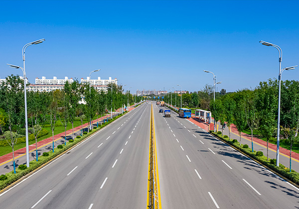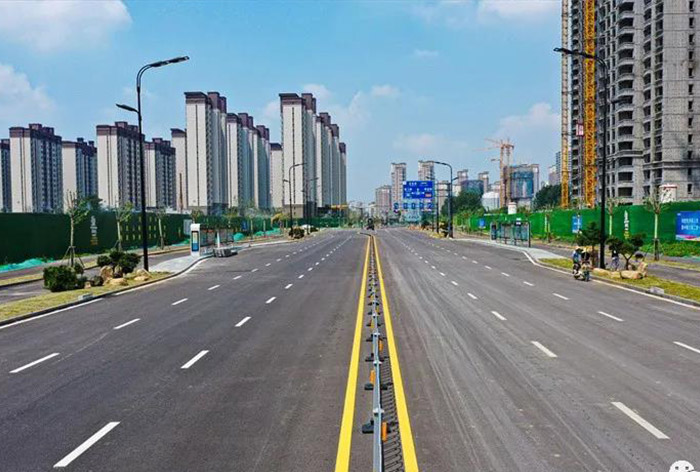 荊泉路全長8300余米,北起紅荷大道,南到騰飛路,貫通解放路,府前東路、夏莊街、青啤大道、騰飛路等主次干道,道路規(guī)劃紅線55米、主車道為雙向6車道、兩側(cè)各1.5米綠化隔離帶,慢車道3米、人行道2米、人行道外側(cè)為10米綠化帶,道路東側(cè)配套設(shè)施有綜合線廊,熱力各一道,道路西側(cè)設(shè)有燃氣、給水、雨水、污水管線。荊泉路于2018年5月開工,2019年10月1日建成通車。全線貫通后有效地緩解了東部城區(qū)的交通壓力,推動?xùn)|部城區(qū)更好、更快發(fā)展。