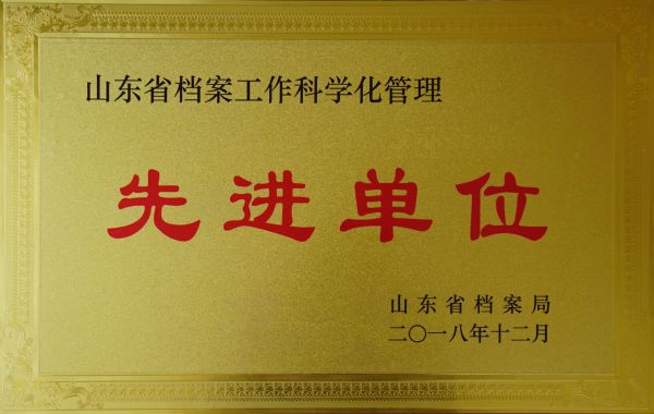 山東省檔案工作科學(xué)化管理先進(jìn)單位