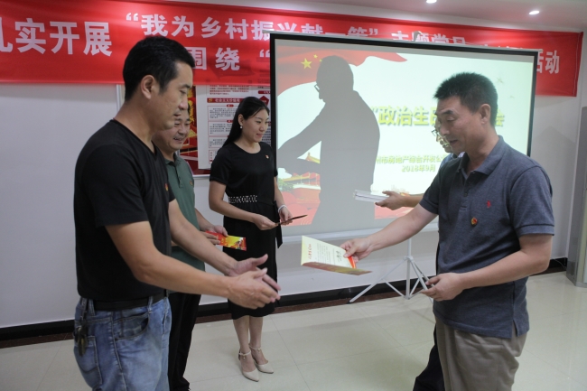 “作為一名共產(chǎn)黨員,這是我上班以來第一次過政治生日,很激動(dòng),我要牢記這一天,記住我們黨員的責(zé)任和義務(wù),為公司發(fā)展貢獻(xiàn)全力?!?月11日,在開發(fā)公司黨支部“政治生日”座談會(huì)上,黨員張愛華從公司經(jīng)理彭立東,公司黨支部書記張峰手中接過生日賀卡、圖書后,激動(dòng)的說。隨后,由張峰書記領(lǐng)誓,該支部全體黨員重溫了入