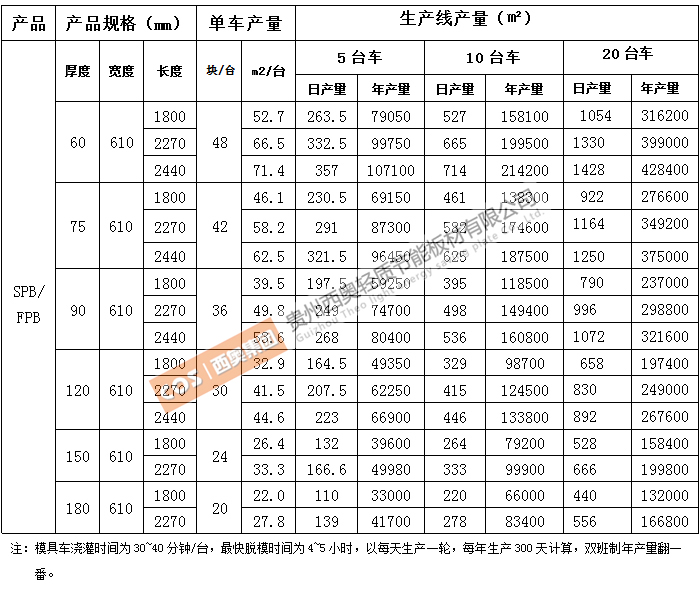 墻板生產(chǎn)配置(模具車)產(chǎn)能說明: