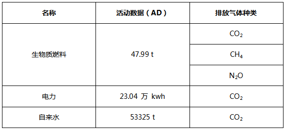 活動水平數(shù)據(jù)主要包括:外購電力、外購生物質(zhì)燃料、自來水,數(shù)據(jù)來自工廠能源及原材料消耗統(tǒng)計。