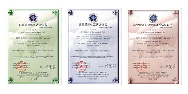 2018年10月23日,貴州西奧輕質(zhì)節(jié)能板材有限公司順利取得質(zhì)量、環(huán)境、職業(yè)健康安全管理“三體系”證書(shū)!這標(biāo)志著貴州西奧綜合管理水平上升到一個(gè)新的臺(tái)階,已經(jīng)與國(guó)際水準(zhǔn)接軌,對(duì)于增強(qiáng)企業(yè)內(nèi)部管理力、外部競(jìng)爭(zhēng)力都具有重要意義。
