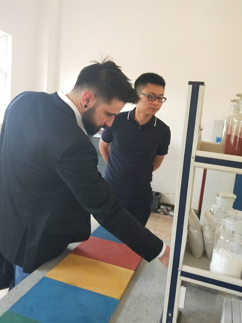 在生產(chǎn)基地,楊景龍為Nielsen進行輕質節(jié)能墻板防火特點現(xiàn)場展示,讓客戶親自體驗了墻板的重量輕、防火性好等特性。并向Nielsen介紹,目前西奧的墻板生產(chǎn)能力居中國西南地區(qū)前列,并且產(chǎn)品已出口東南亞、非洲等多個國家。