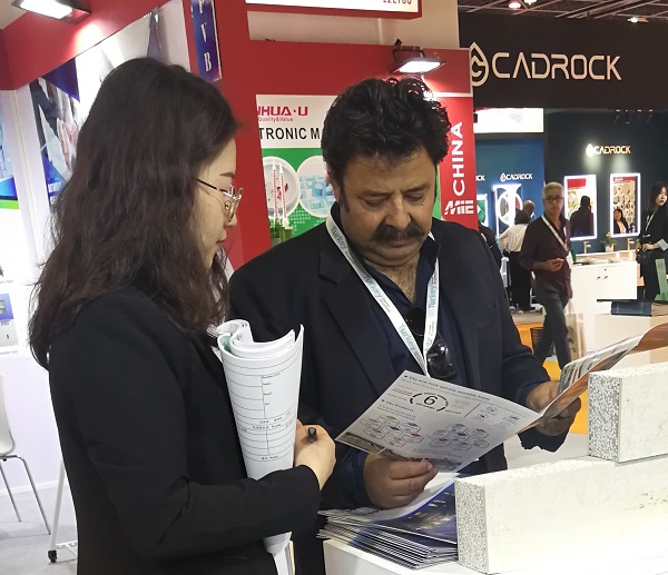當(dāng)參觀(guān)者眾多的時(shí)候,董事長(zhǎng)楊景龍就會(huì)手持產(chǎn)品的英文宣傳頁(yè),用“圖說(shuō)”的方式向客戶(hù)作起介紹。他說(shuō),關(guān)注度之高超出來(lái)之前的預(yù)想,早知道應(yīng)該再安排一位英語(yǔ)專(zhuān)員前來(lái)就更好了。